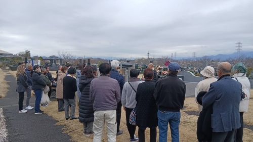 湘南公園墓地内、永代供養墓「曄(かがや)きの碑」にて。30名程のご参加。