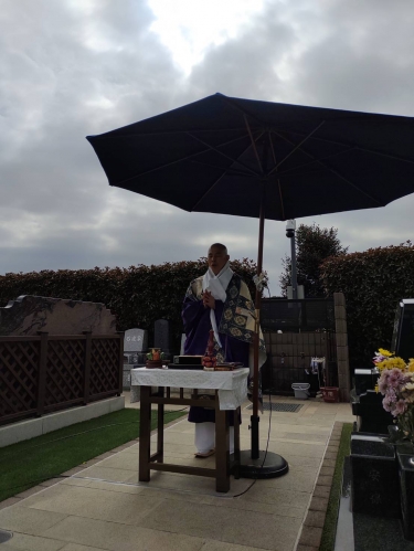 所沢市内の霊園様にて。こちらは当院の松本副住職がお勤め。
